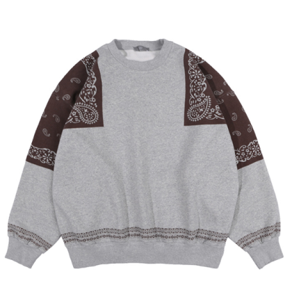• 2024 Autumn/Winter New Trendy Brand Retro Cashew Flower Splicing with Velvet Round Neck Hoodie for Men, Loose fit