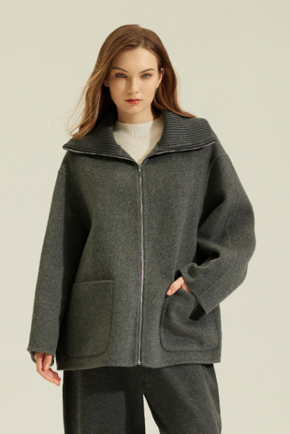 • 2024 autumn and winter Puyuan double-sided woolen jacket, knitted collar, baseball jacket, wool zipper cardigan