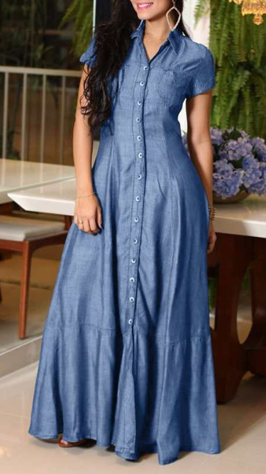 • 2024 new long skirt, shirt collar, pocket, large swing skirt, plus size casual denim dress