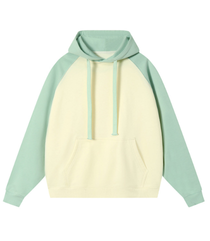 380g raglan color blocked loop loose fit shoulder hooded sweatshirt