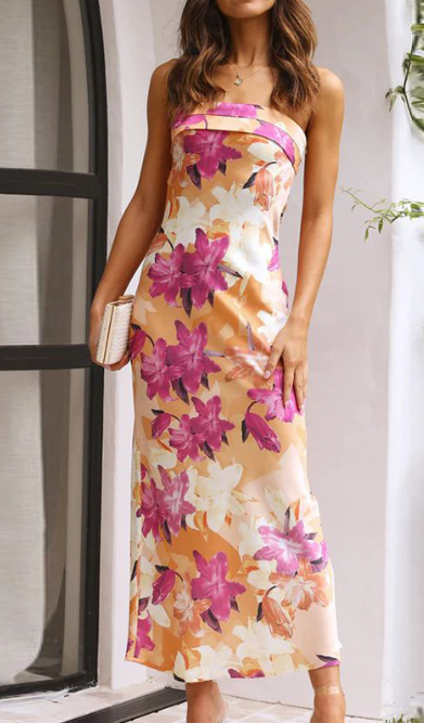 2024 Spring/Summer New Style Elegant Ladies Satin Bareback strapless Dress Printed